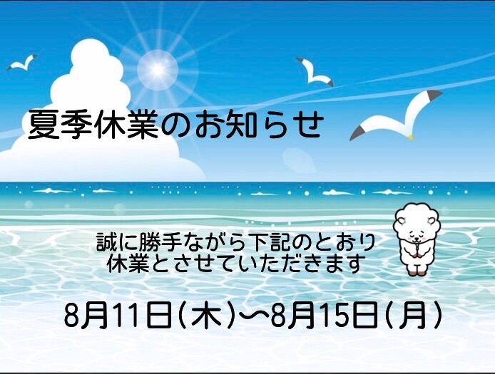 夏季休業のお知らせ